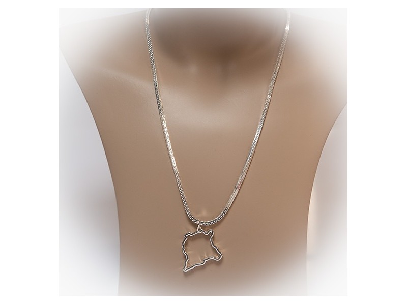 Bij ons koop je de mooiste Surinaamse sieraden, zoals deze zilveren Surinaamse sieradenset bestaande uit een Peruaans model ketting met een Surinaamse landkaart hanger.