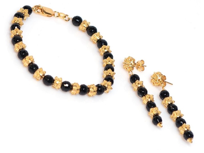 Bij ons koop je de mooiste Surinaamse sieraden, zoals deze vergulde Surinaamse armband met bijpassende oorbellen.