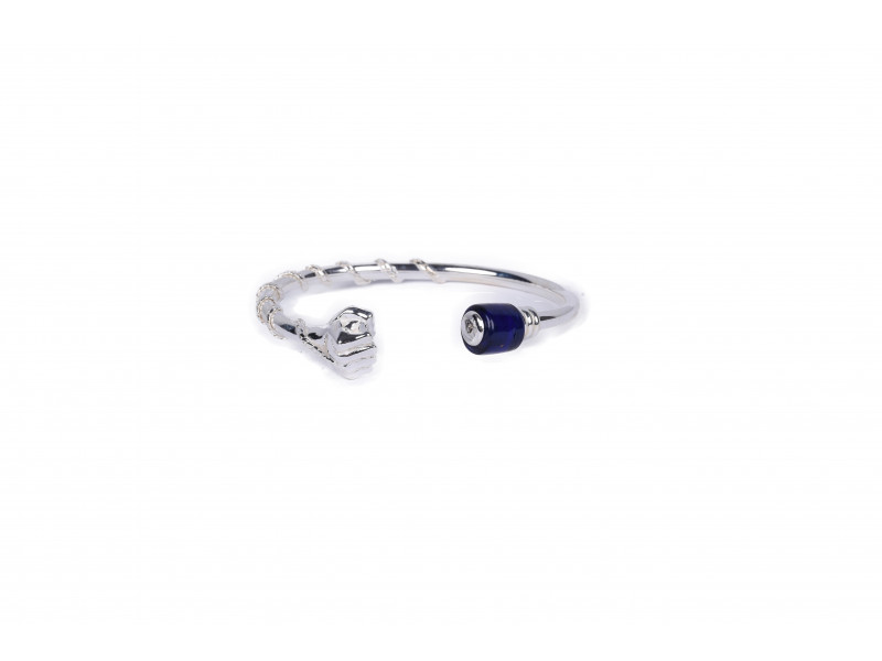 Deze flexibele zilveren slavenarmband met blauwe ingi boka kraal van Fokko Design heeft een stijlvol Surinaams design met een goede oog voor de details. Deze zilveren slavenarmband heeft een culturele betekenis.